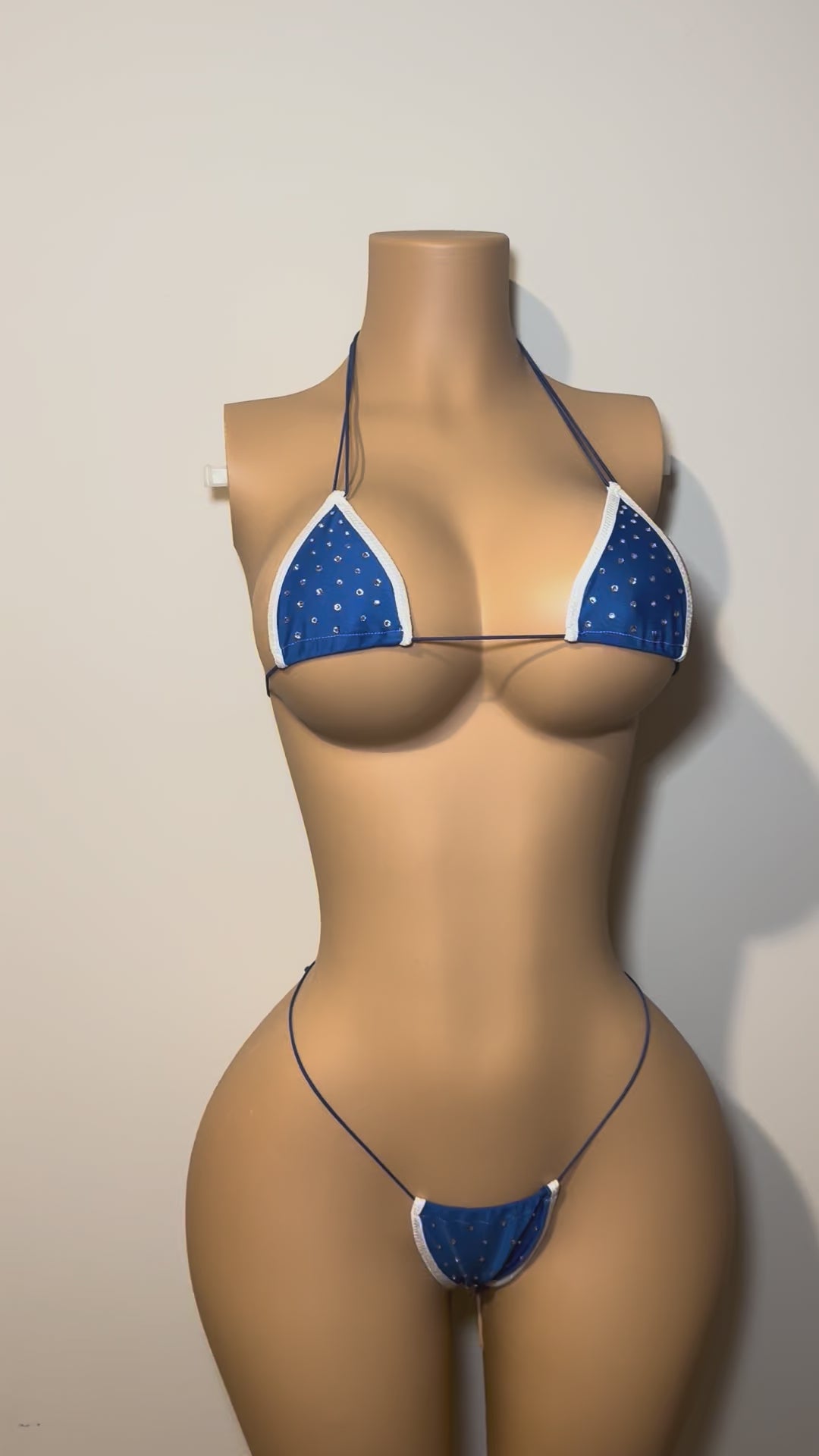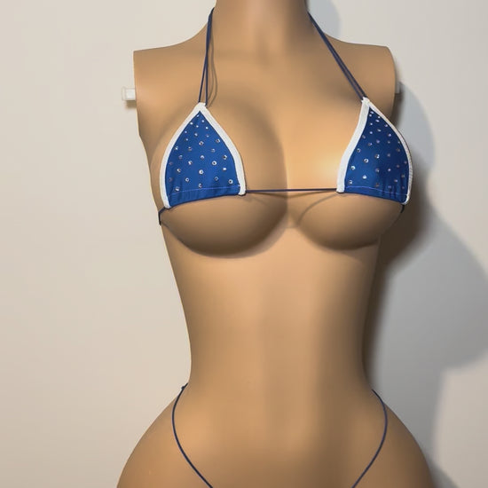 The Dallas 'kini is apart of our Gameday Collection and features blue stretchy spandex fabric with rhinestones. Perfect for a Gameday shift 🏈✨