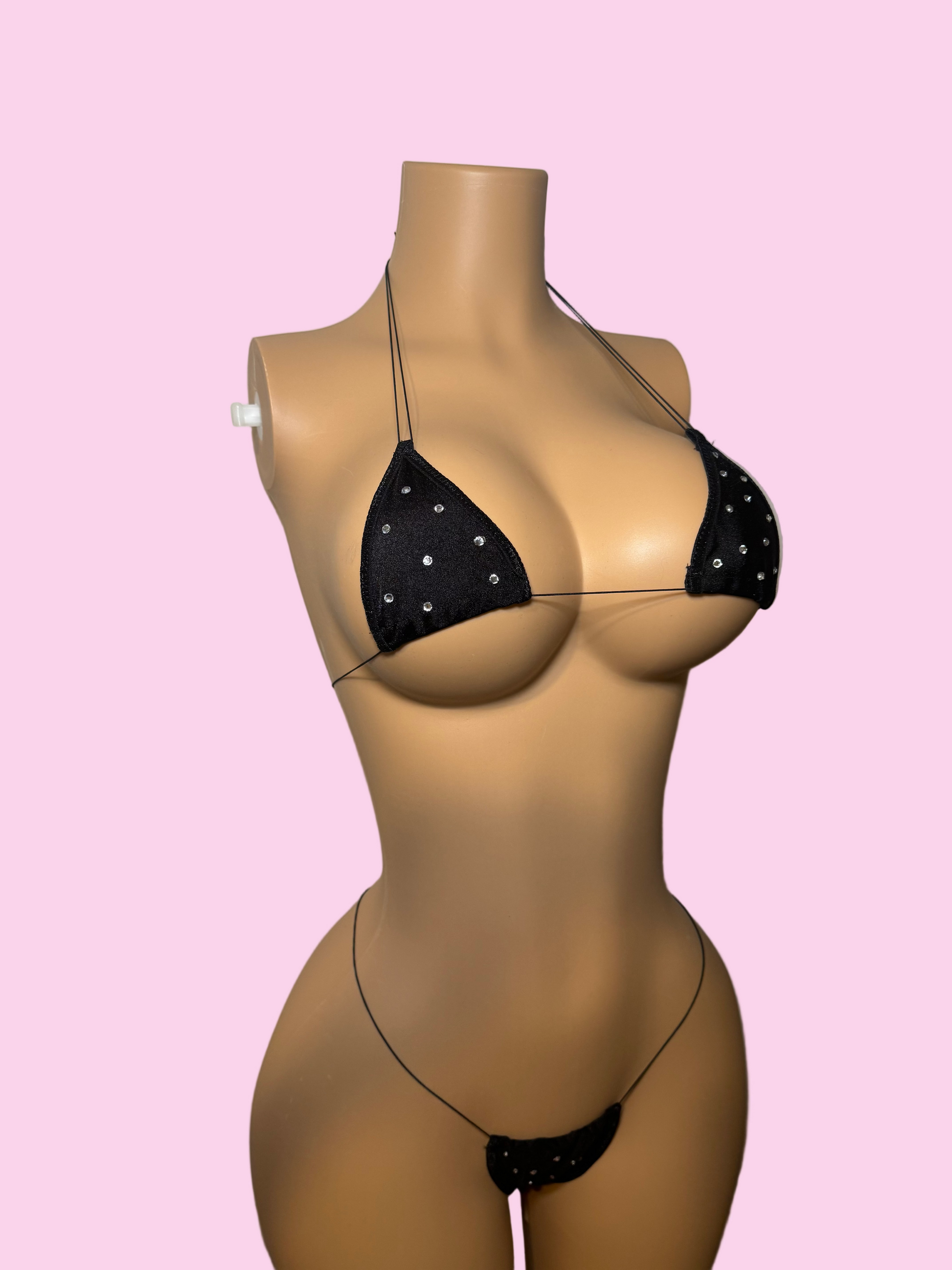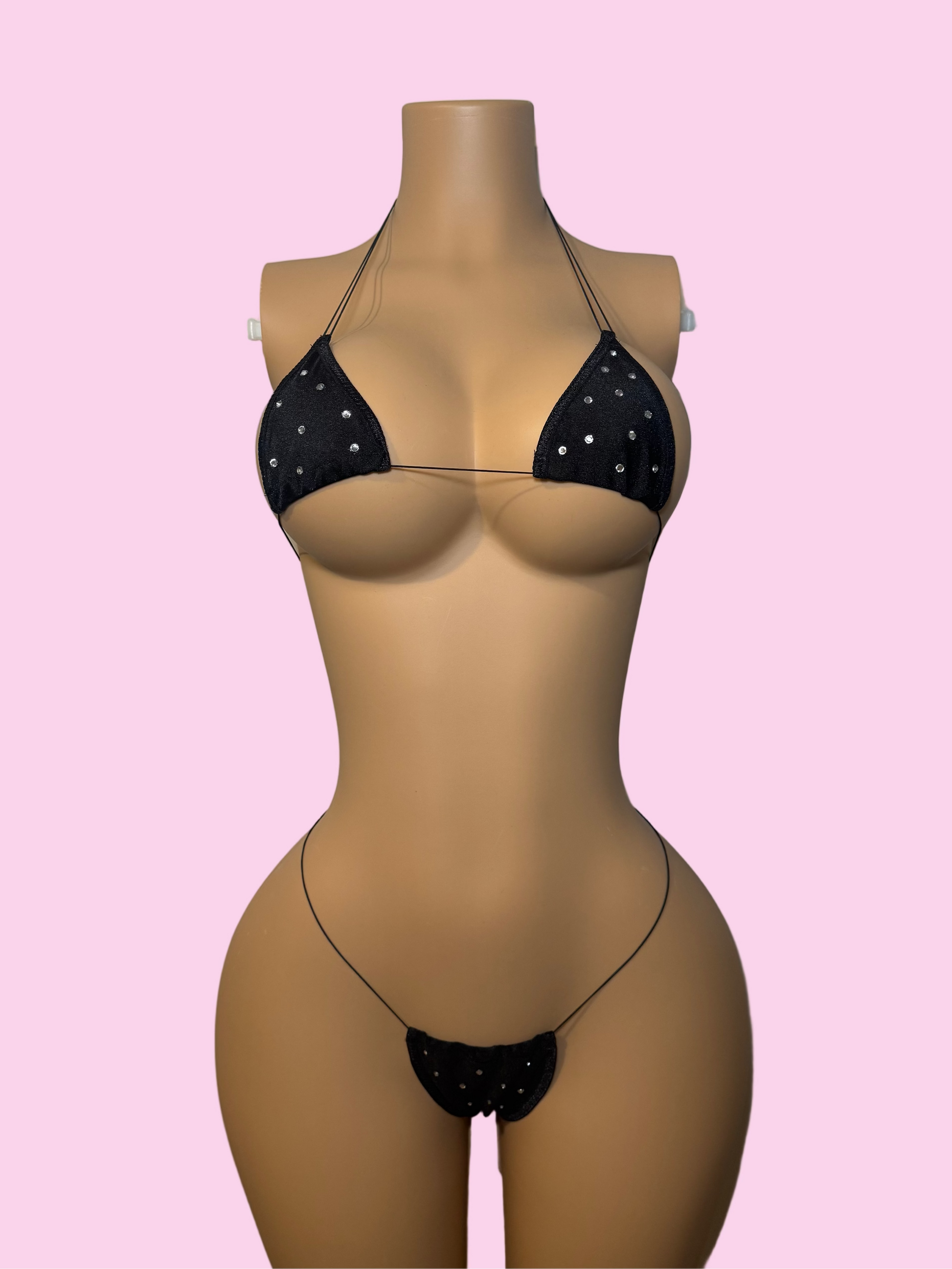 Our Lexi 'kini is made from stretchy spandex fabric and durable elastic string. Added sparkle for a money-making night 💎.