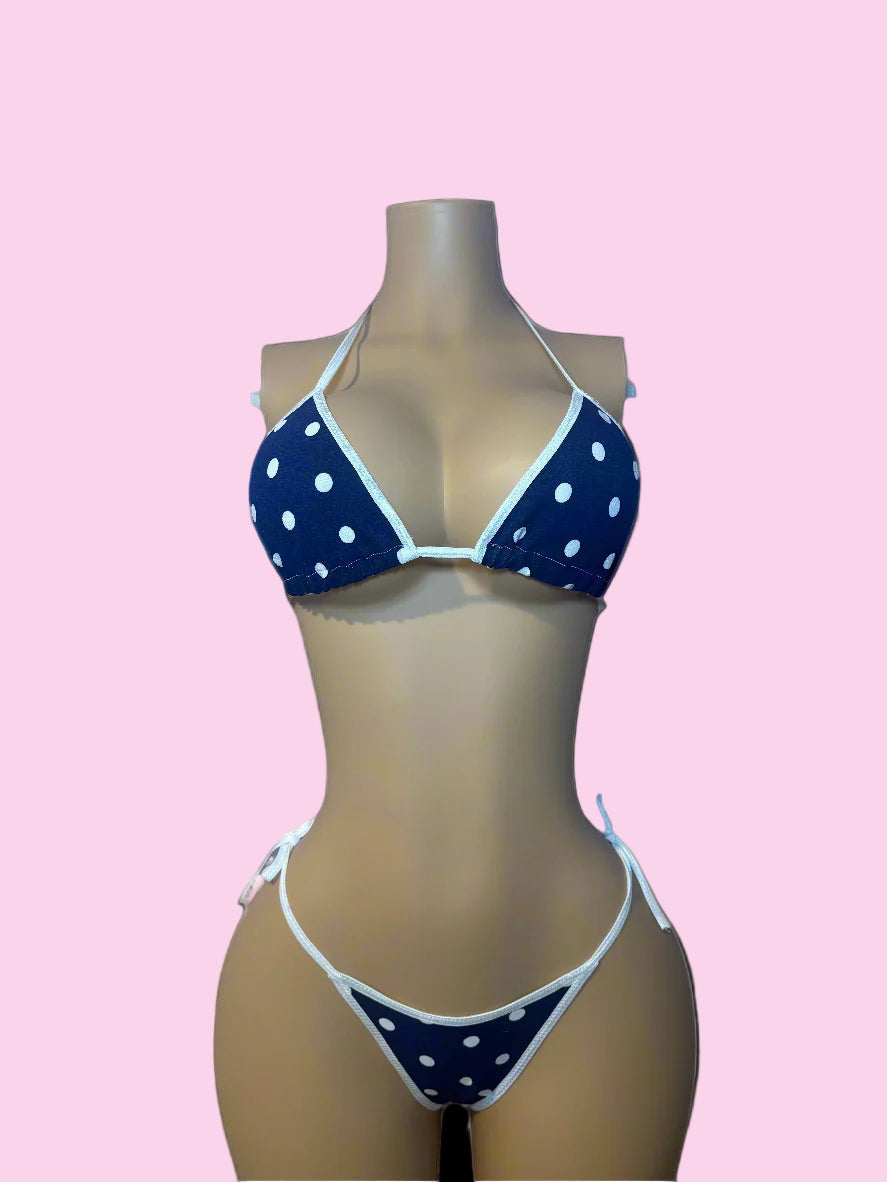 Girly and soft, the Allie 'kini is made from stretchy knit fabric with medium stretch and durable elastic string.