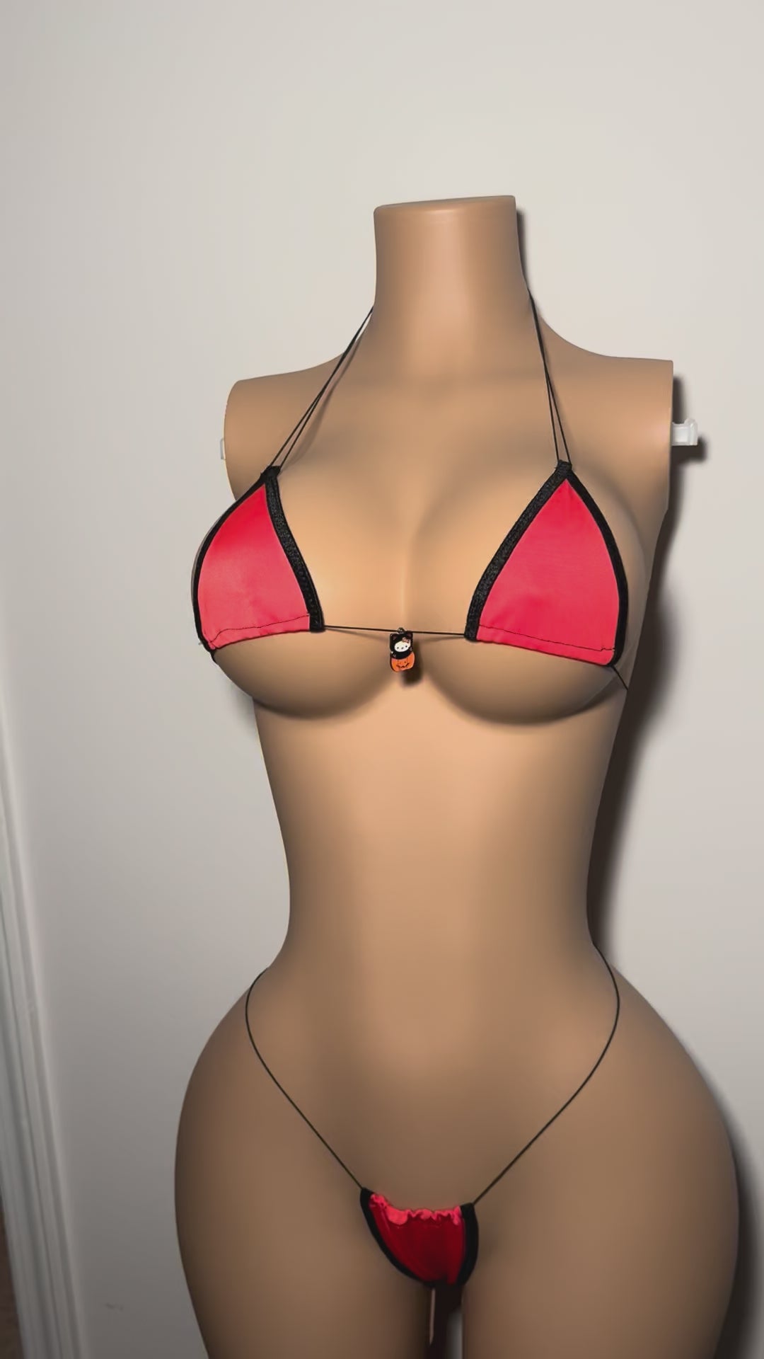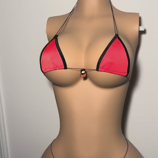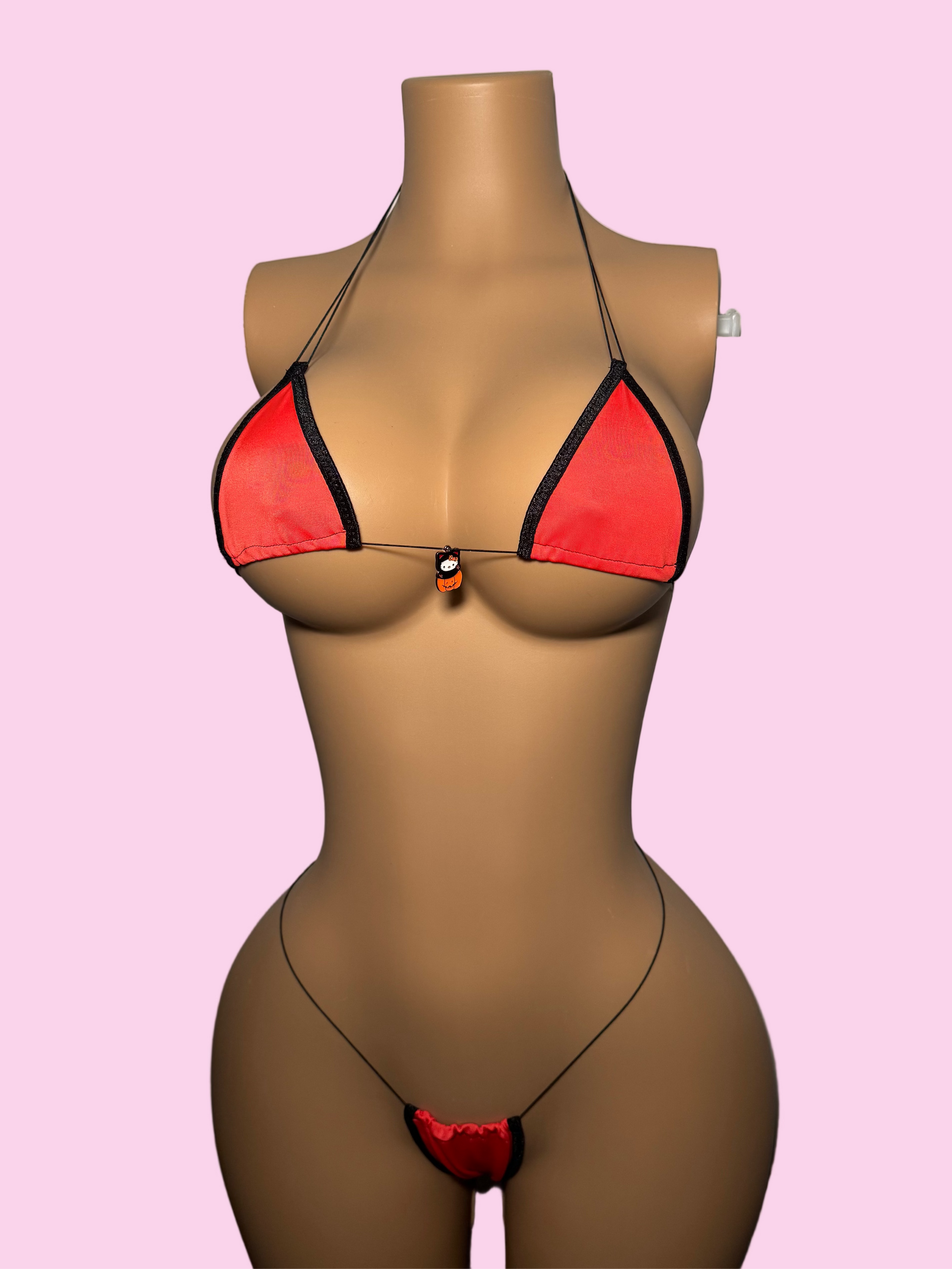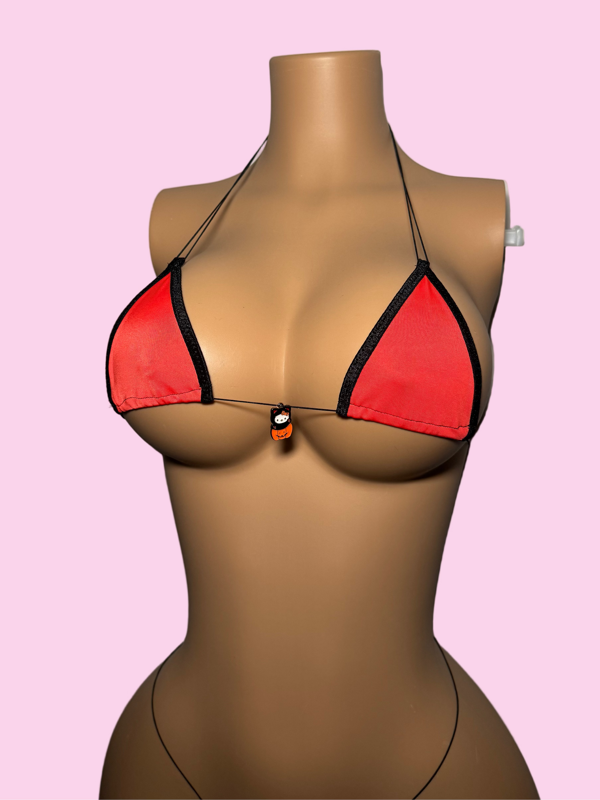 The Pumpkin 'kini is apart of our Halloween collection and features a special Hello Kitty Halloween charm. Made from stretchy spandex fabric and durable elastic string.