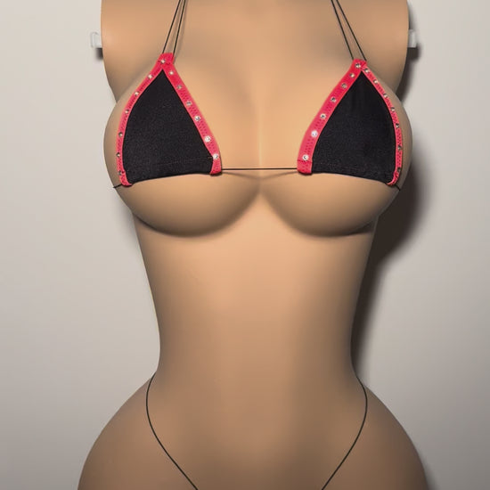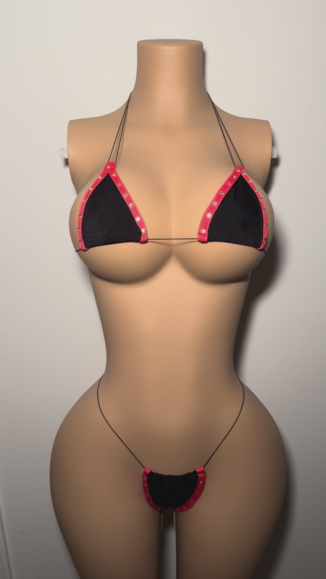 The Trixxxie 'kini is apart of our Halloween Collection and features rhinestones on both top and bottom. Made from stretchy spandex fabric and durable elastic string.