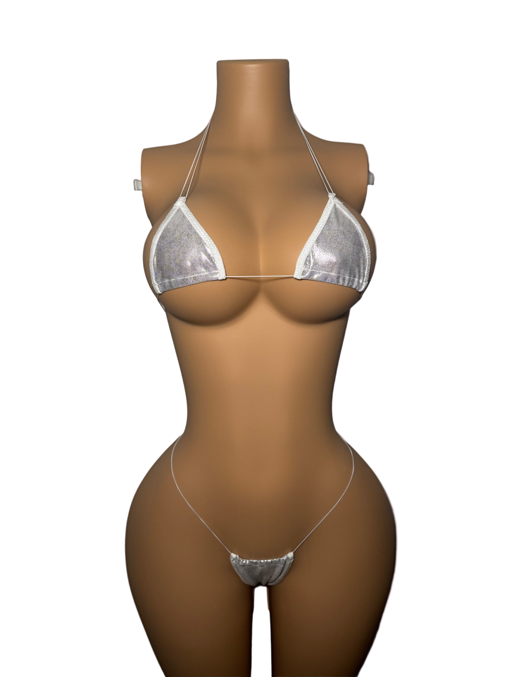 The Winter microkini is a silver stunner & money maker 🪙. Made from stretchy spandex fabric and durable elastic string.